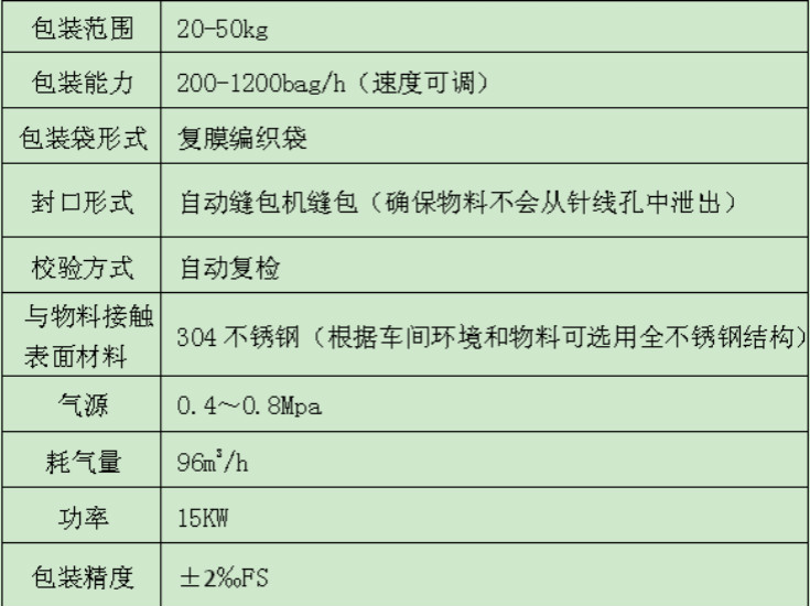 有機肥全自動包裝秤技術(shù)參數(shù):
